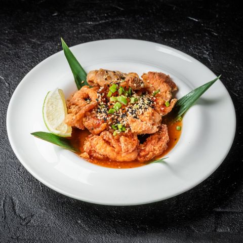 стеклянная лапша с курицей, овощами, древесными грибами, яйцом, перцем чили, лаймом и кинзой
